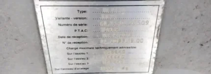 Poids net à vide: 1940 kg Poids total en charge: 5940 kg Dimensions hors-tout: 6.14 m × 2.23 m × 1.58 m Etat: Occasion – très bon état. Garantie: 1 an